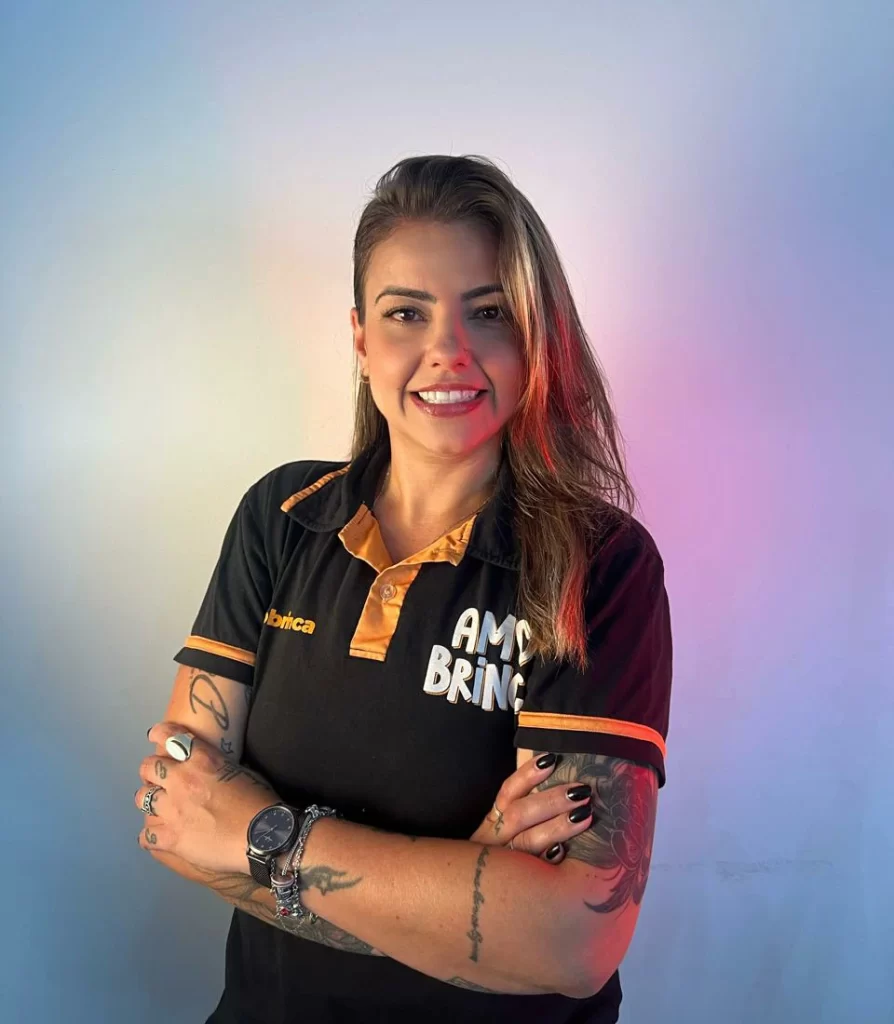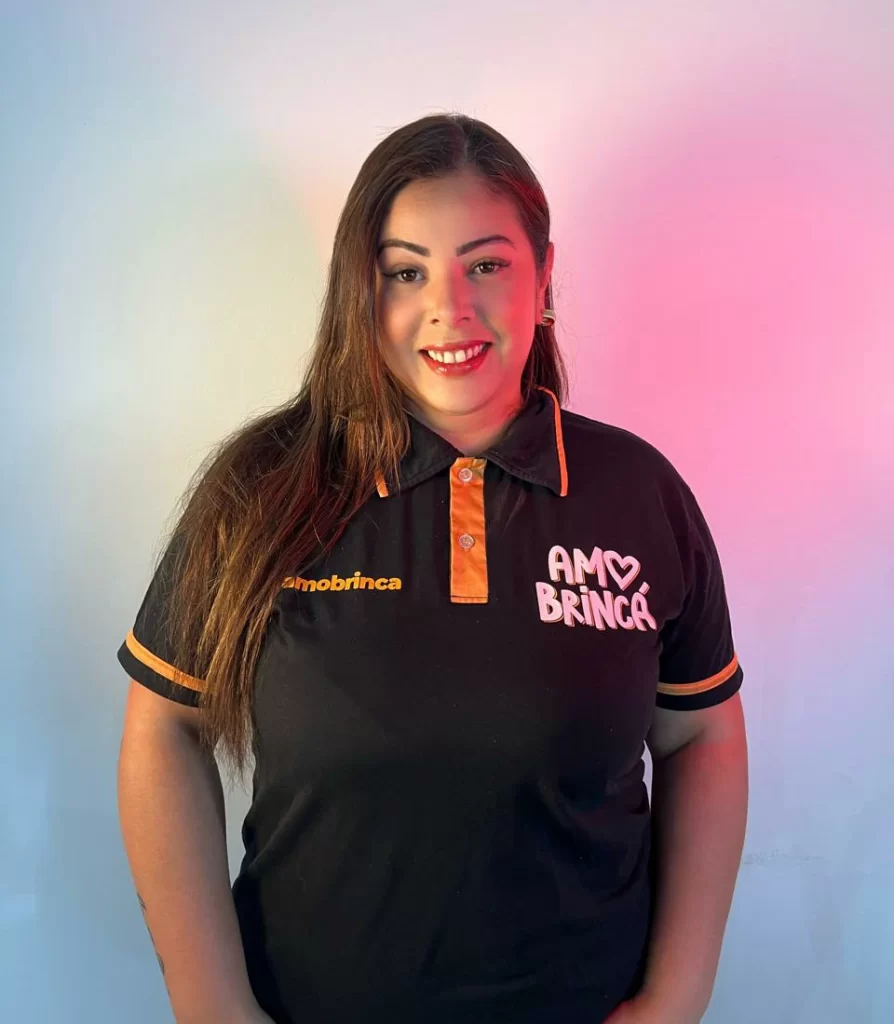 Responsável por traduzir a alma da AmoBrincá em comunicação. Ela cuida dos nossos bastidores, dos conteúdos e da forma como mostramos o que fazemos com alegria, verdade e estratégia.