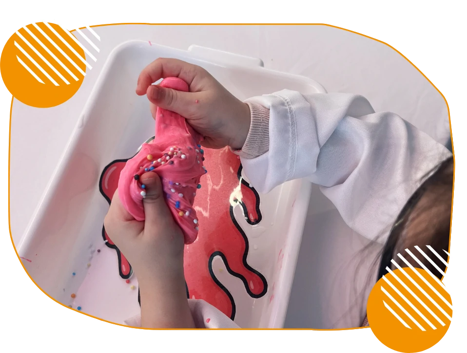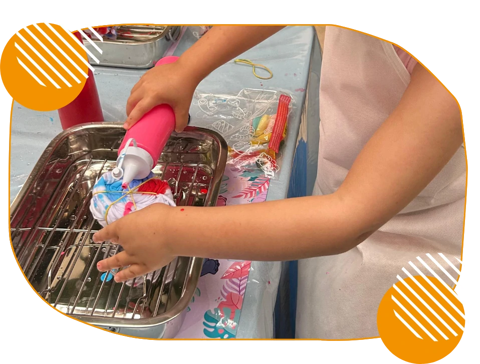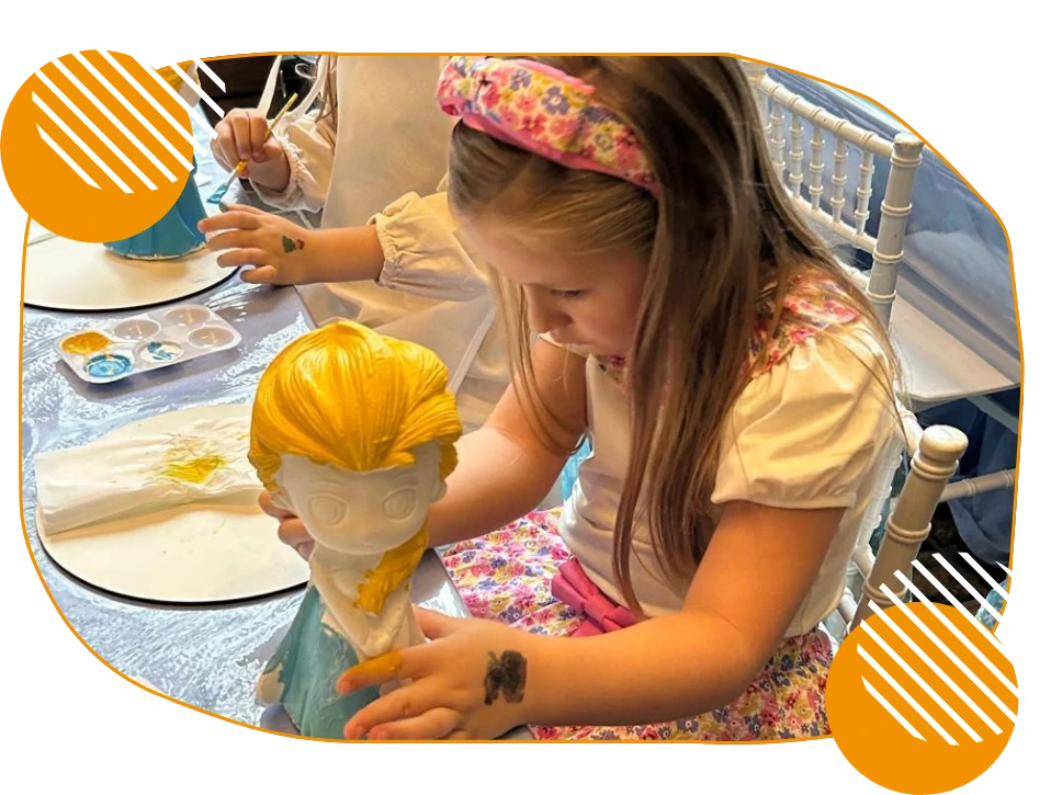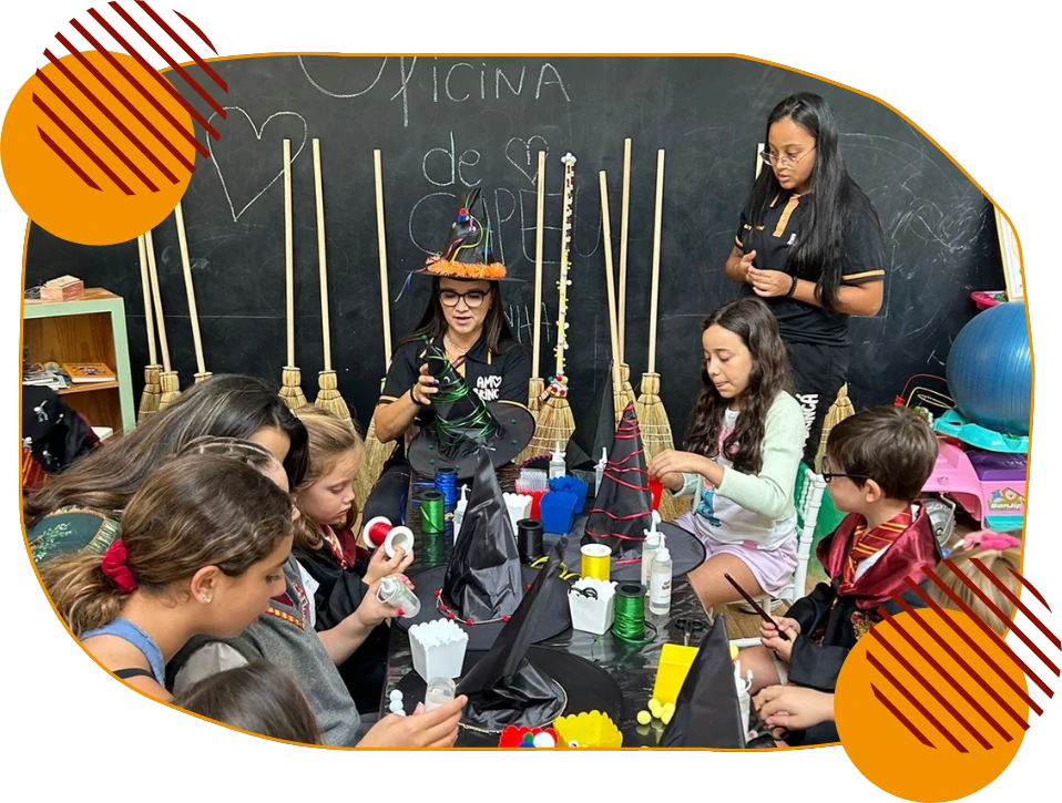A criança cria, se expressa, se diverte e no final, leva sua obra para casa em um embrulho especial, como lembrança personalizada daquele dia inesquecível.